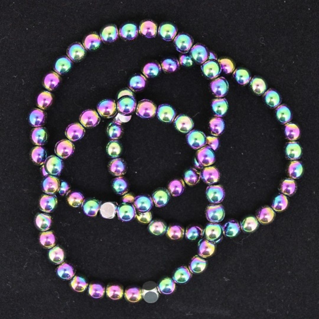 ist eine neue Option zum standard in silber. Die Kugeln sind mit Titan elektrolytisch beschichtet und haben eine schillernde Farbenpracht. Standard ist 17/19 cm Gelenksumfang. Auf Wunsch auch in anderen Längen anfertigbar.